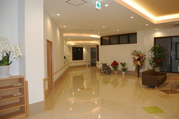 玄関のエントランスです。広々とした空間で段差もなく安全に移動できます。